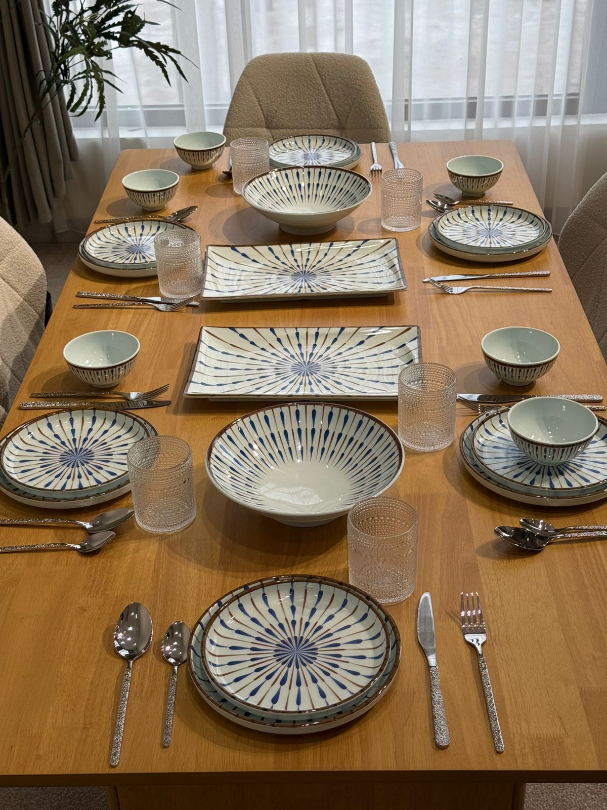 سێتێکی مۆدێرنی  نان خواردن بە نەخشی شین