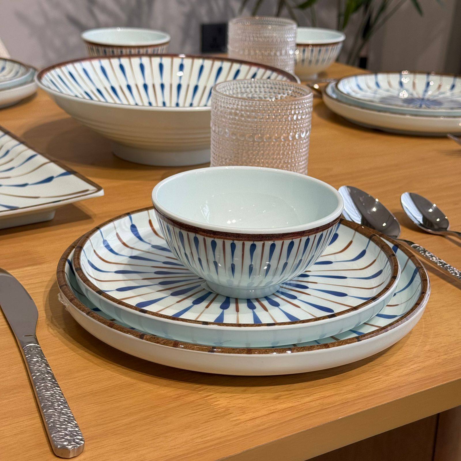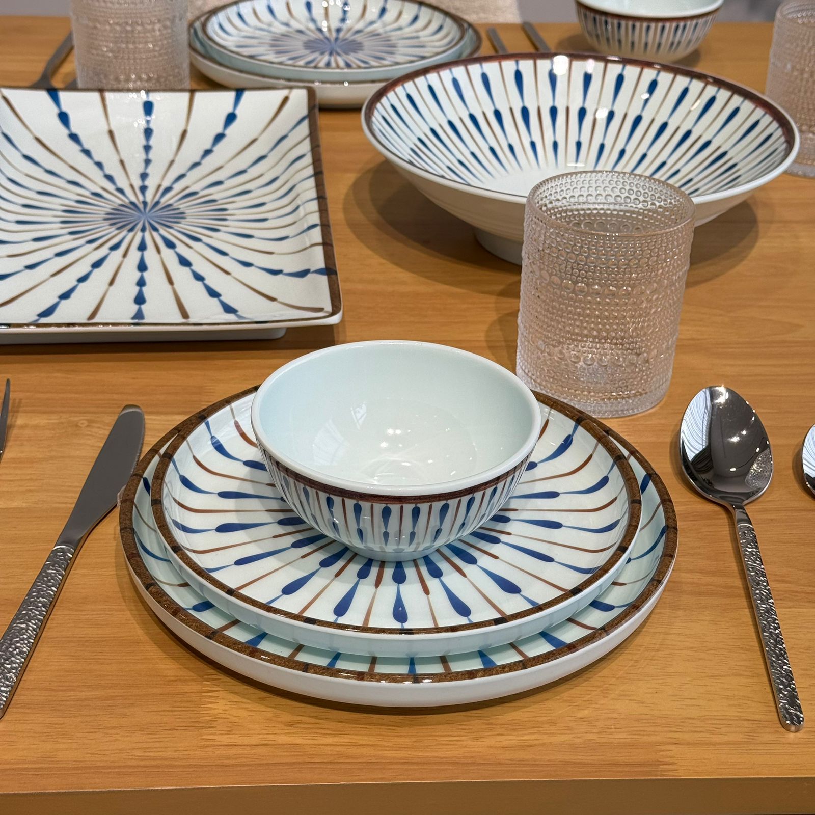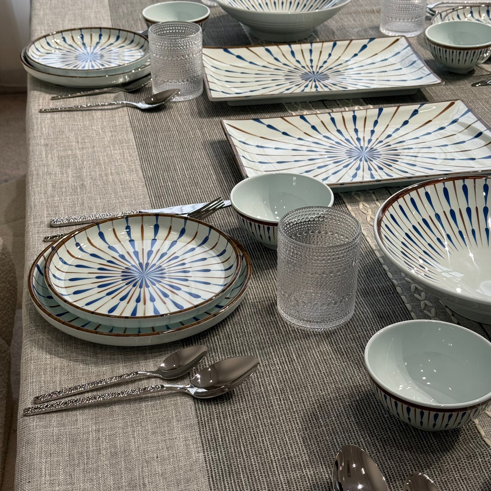 سێتێکی مۆدێرنی نان خواردن بە نەخشی شین