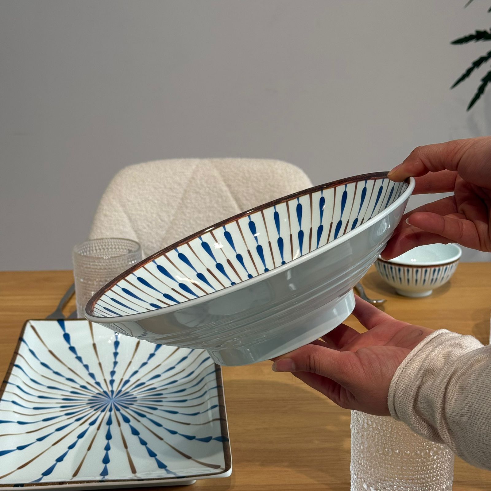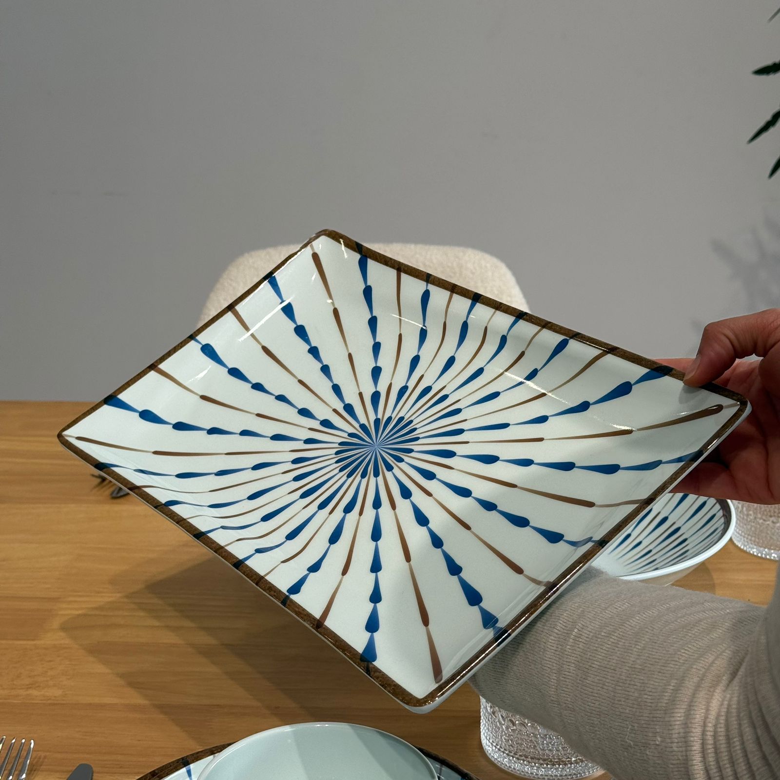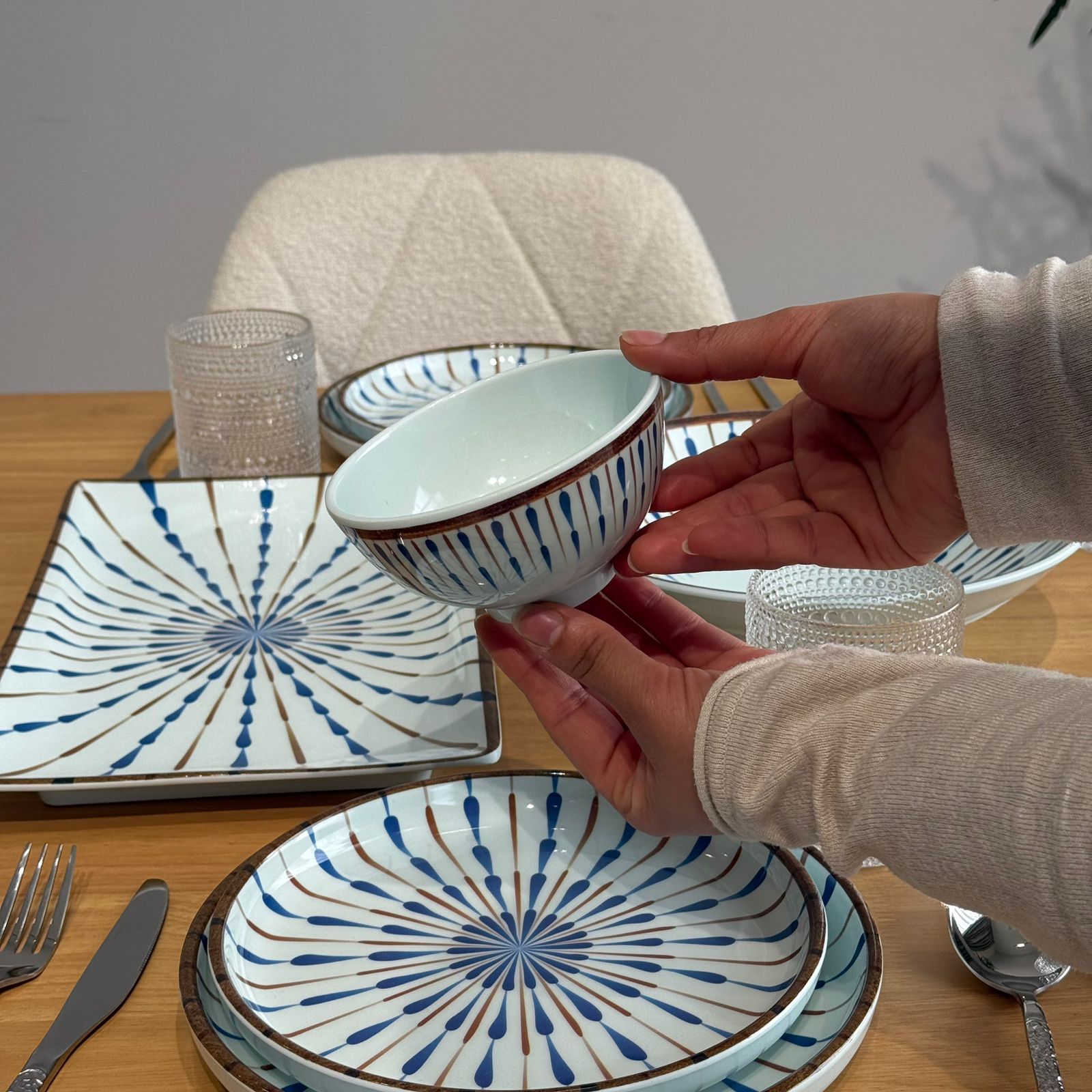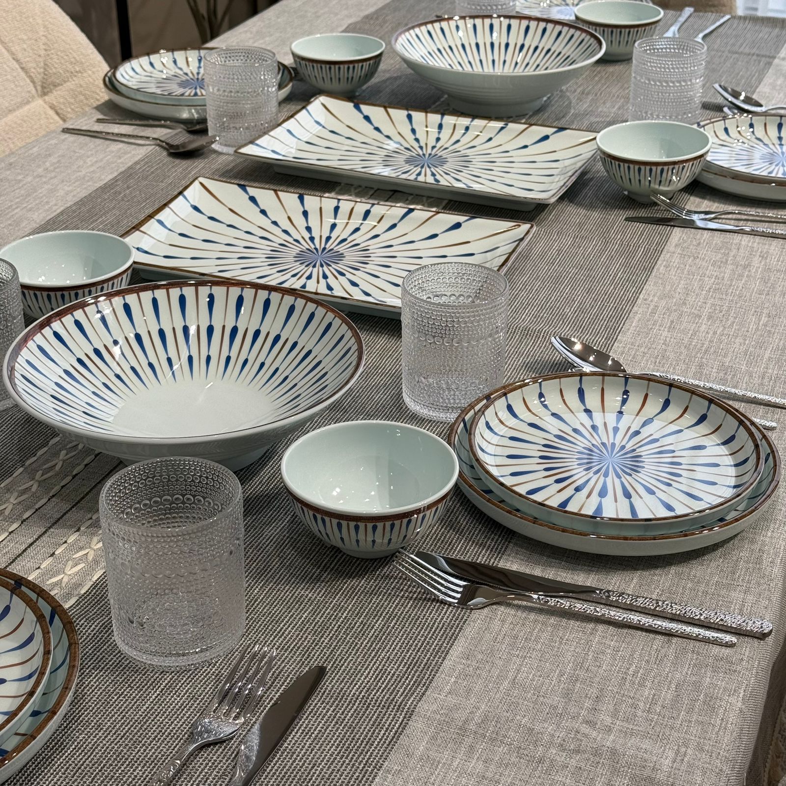 سێتێکی مۆدێرنی نان خواردن بە نەخشی شین