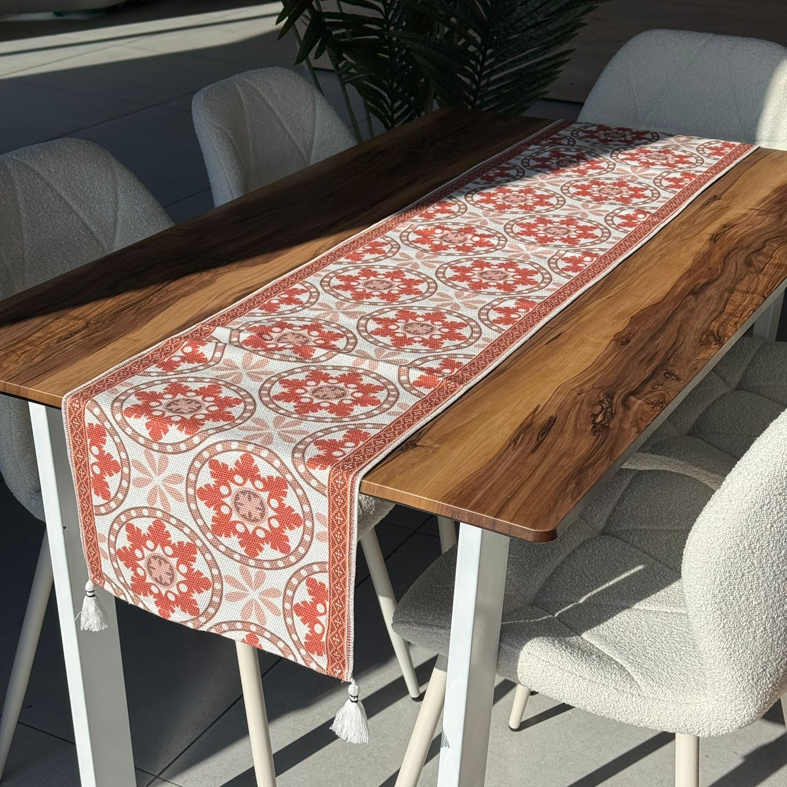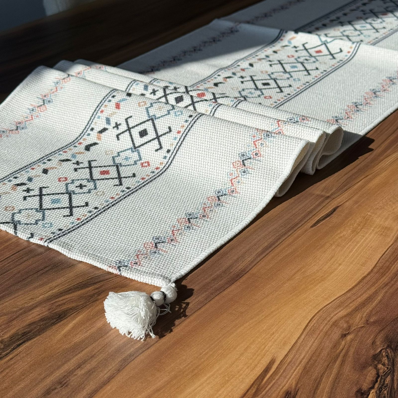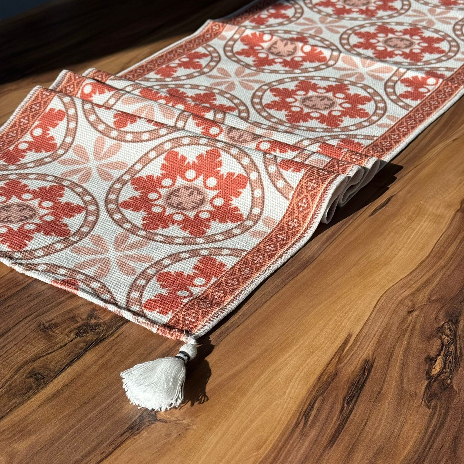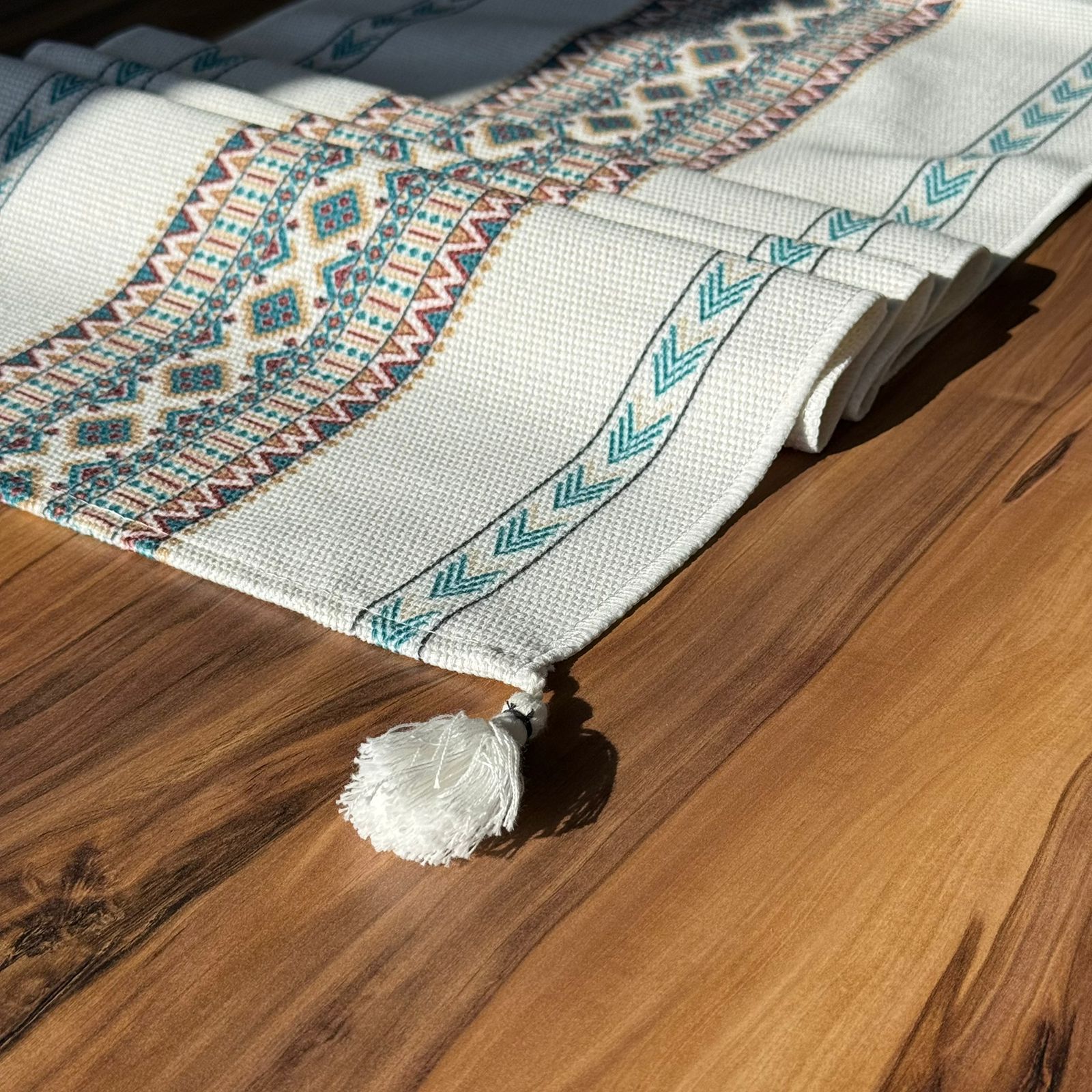 مفرش طاولة منسوج مزخرف مقاس 30 × 180 سم مع تفاصيل شرابة