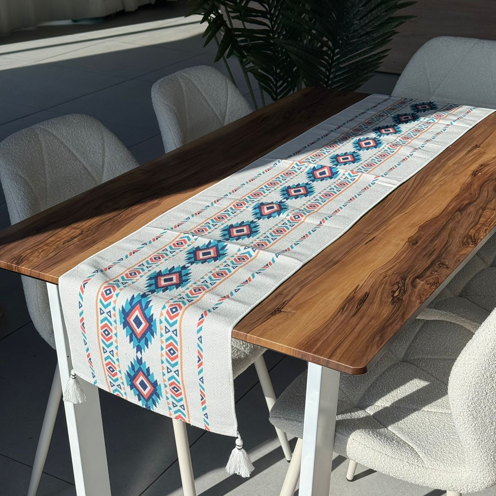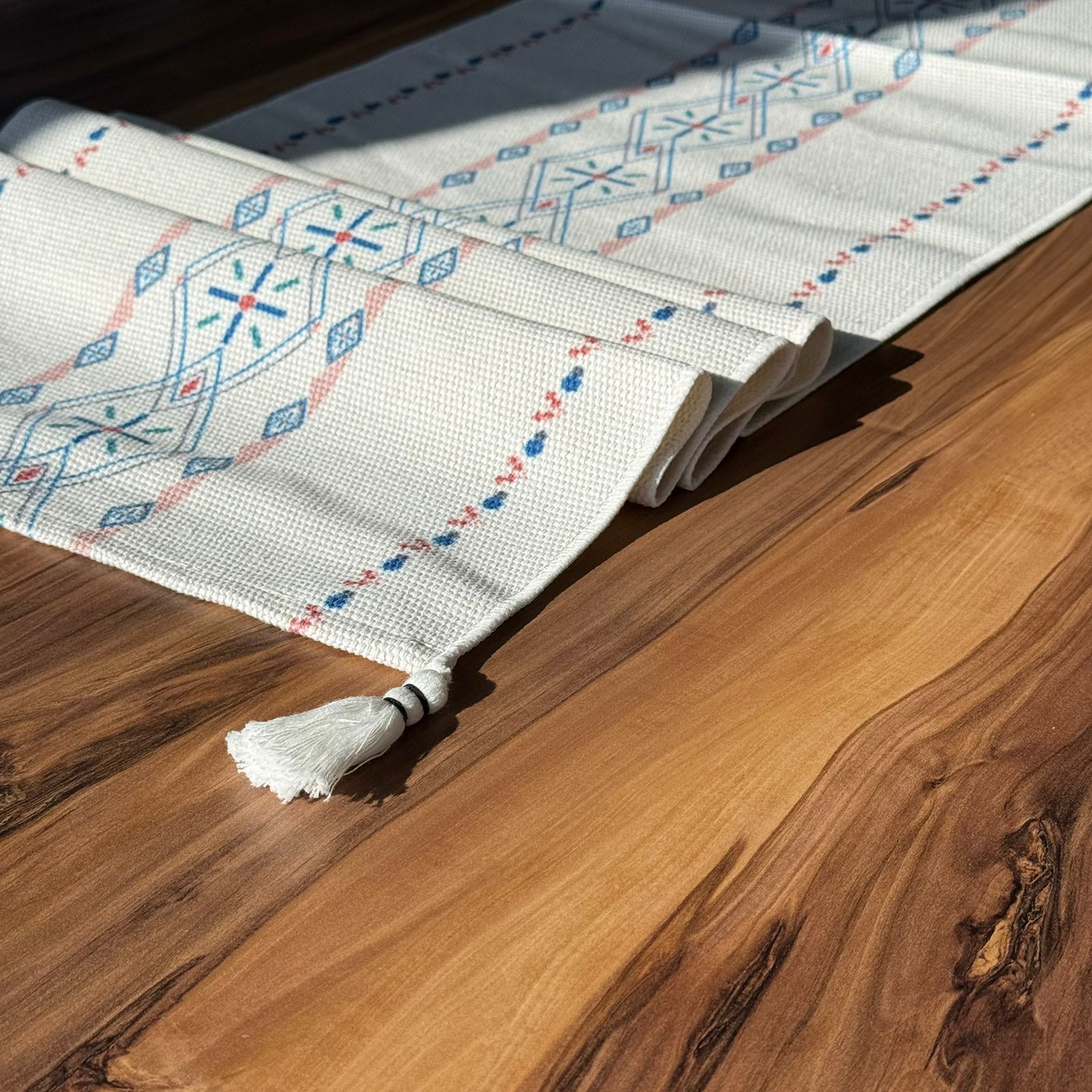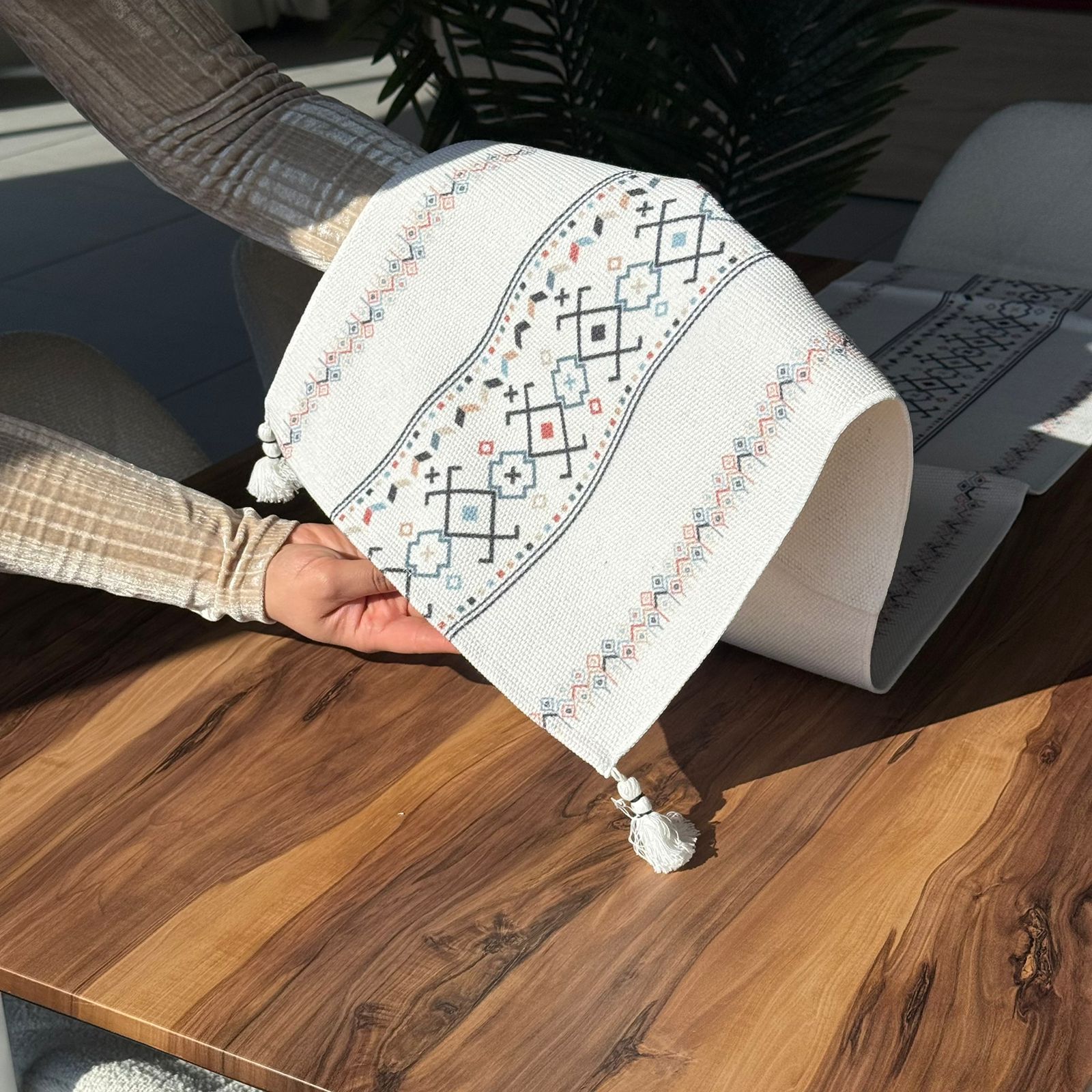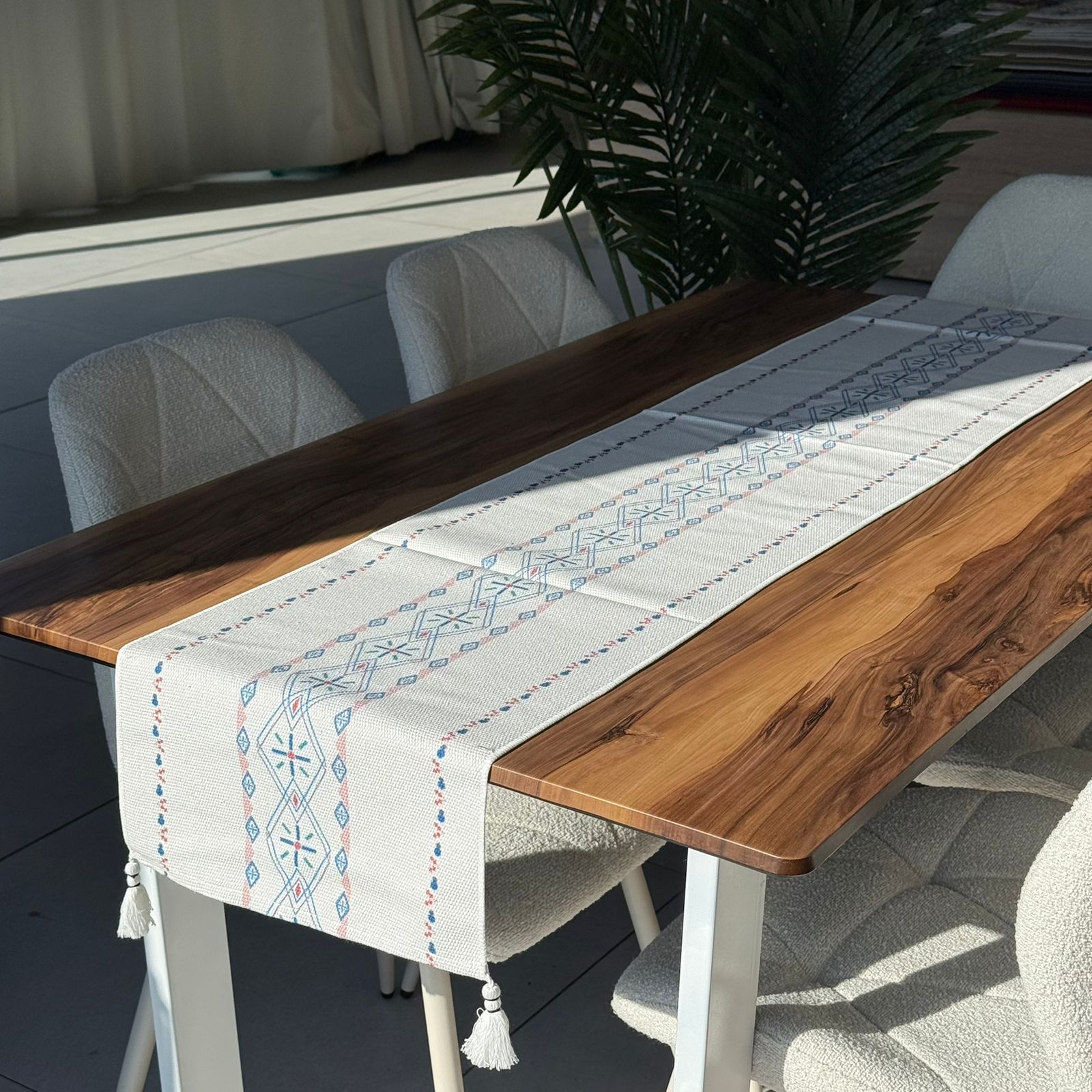 مفرش طاولة منسوج مزخرف مقاس 30 × 180 سم مع تفاصيل شرابة