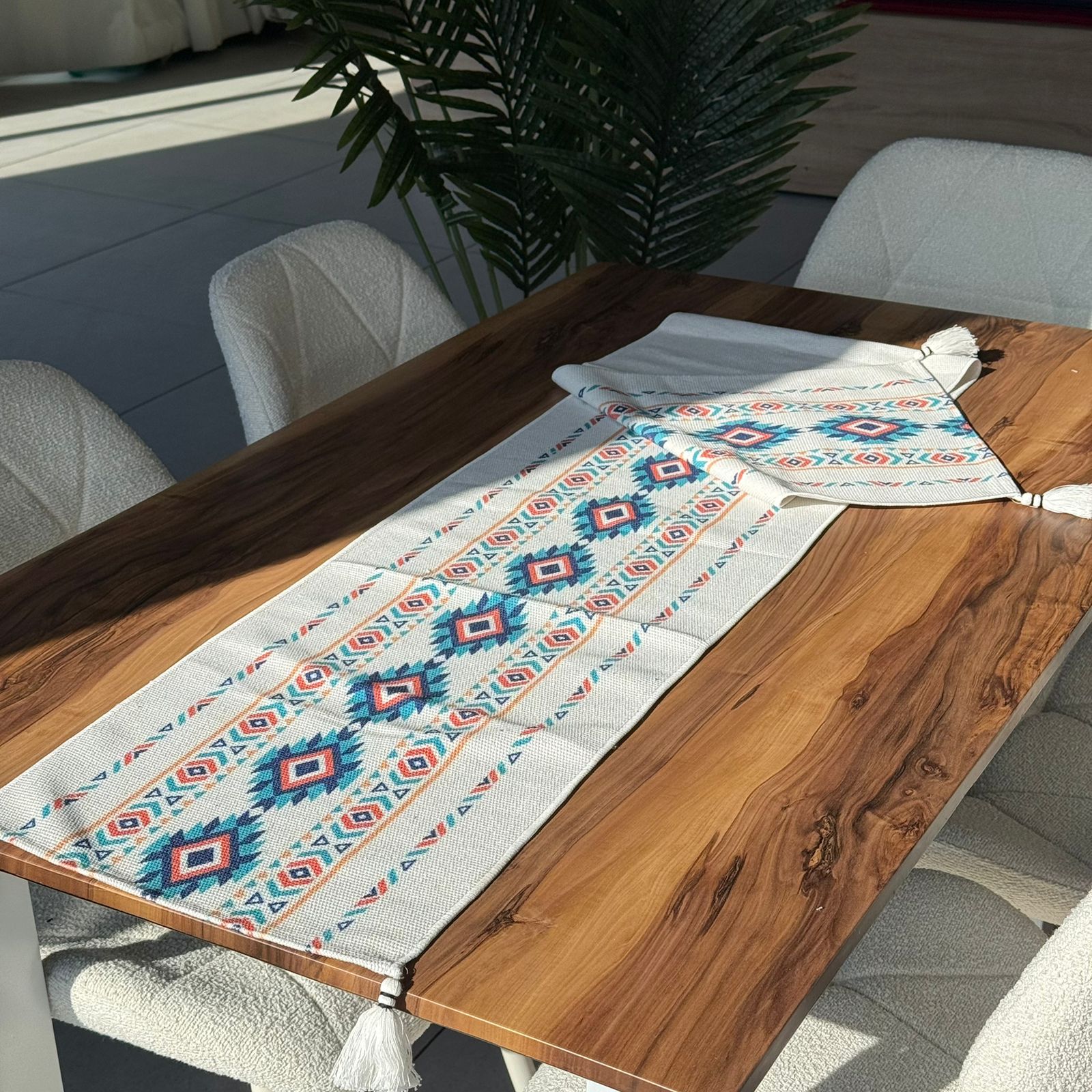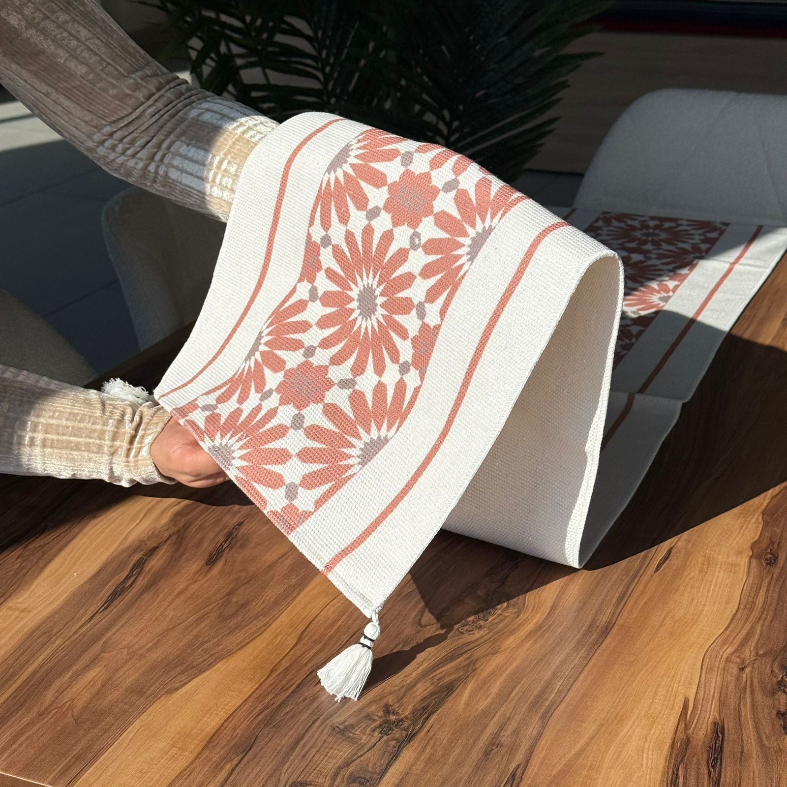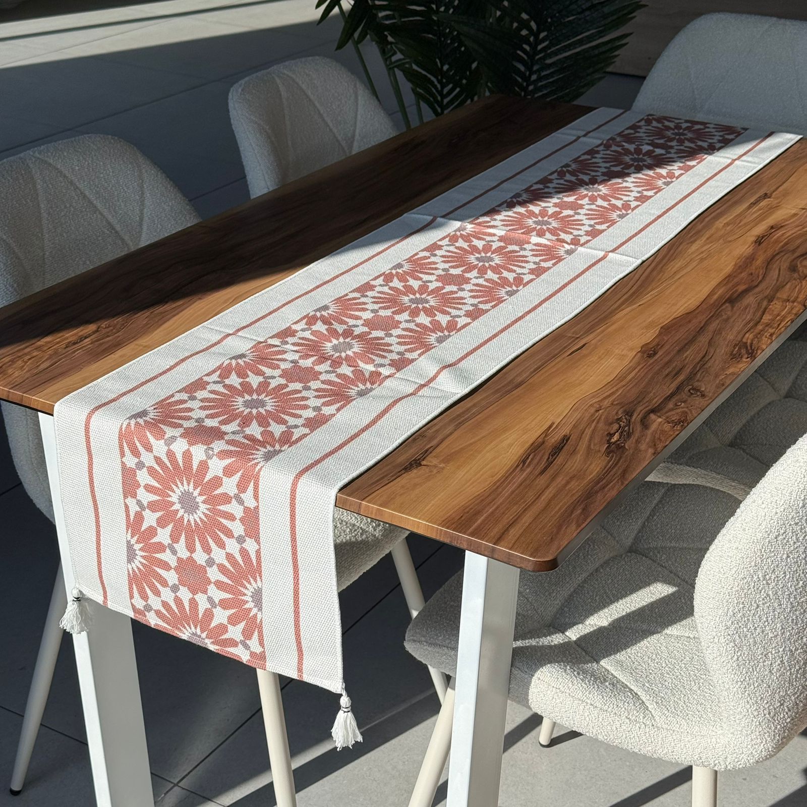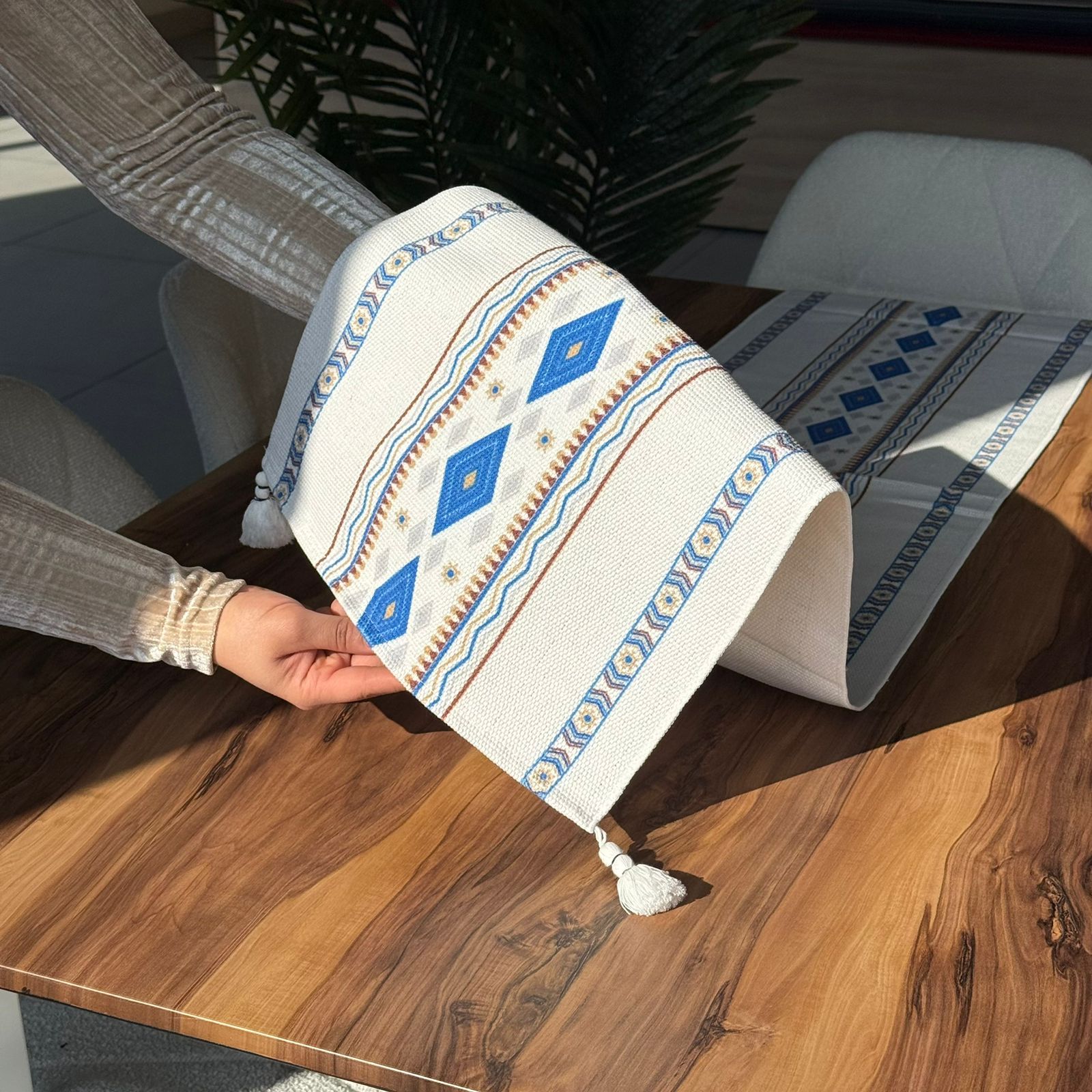 مفرش طاولة منسوج مزخرف مقاس 30 × 180 سم مع تفاصيل شرابة