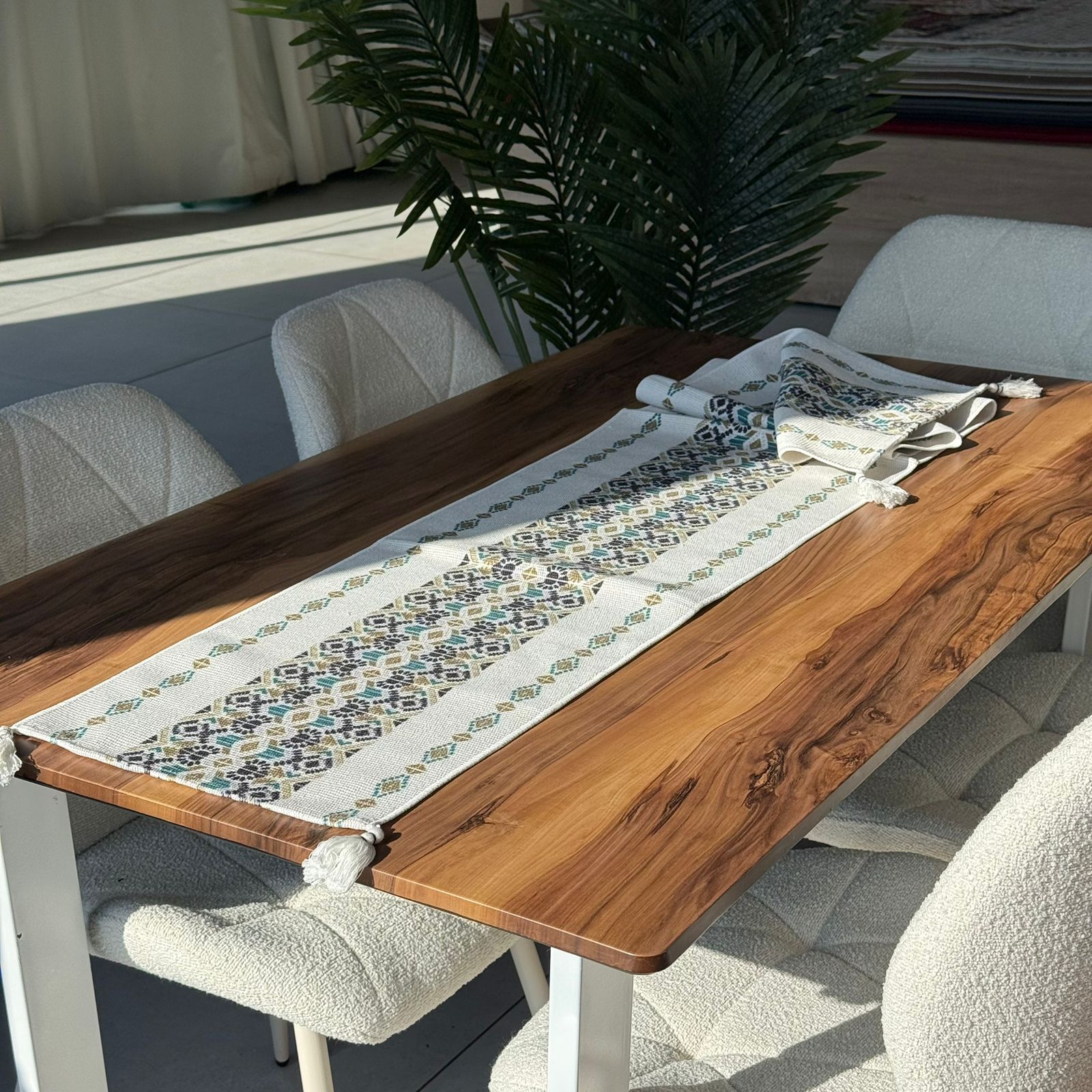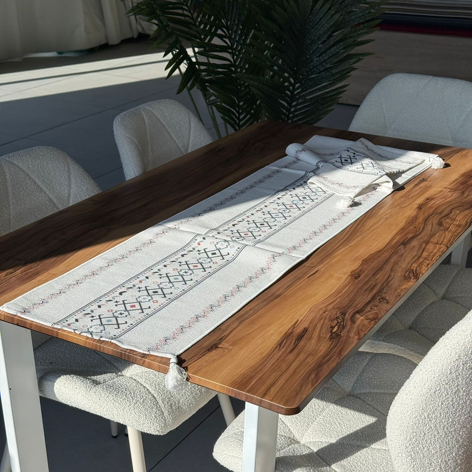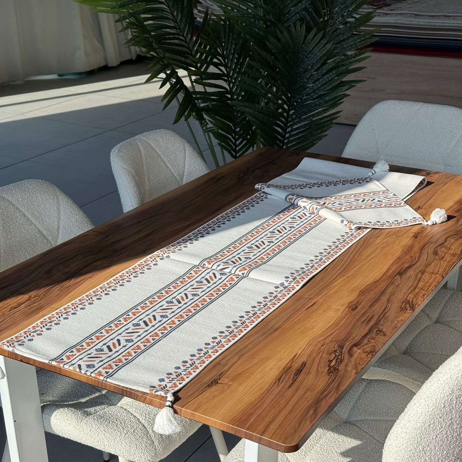 مفرش طاولة منسوج مزخرف مقاس 30 × 180 سم مع تفاصيل شرابة |