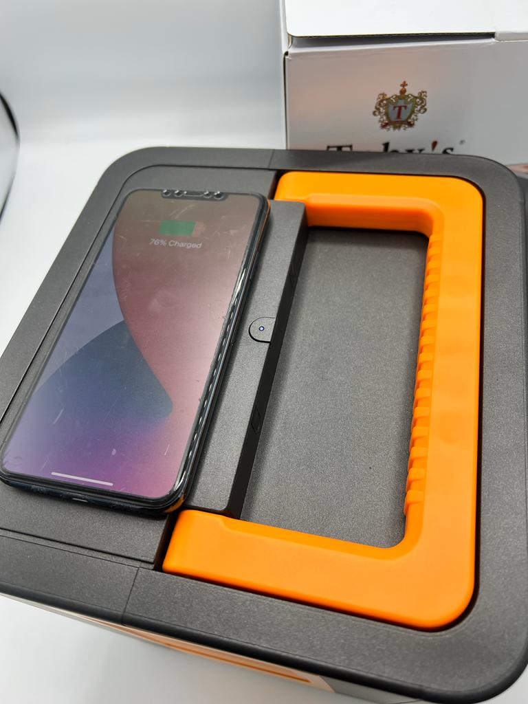 هەروەها لەگەڵ شوێنی شەحنکردنەوەی بێ وایەر لە پێشەوەی پاوەر بانکەکە، کە مۆبایلەکەت بارگاوی دەکاتەوە (تەلەفۆن) تەنها بە دانانی ئامێرەکەت لەسەر شوێنی شەحنکردنەوە.