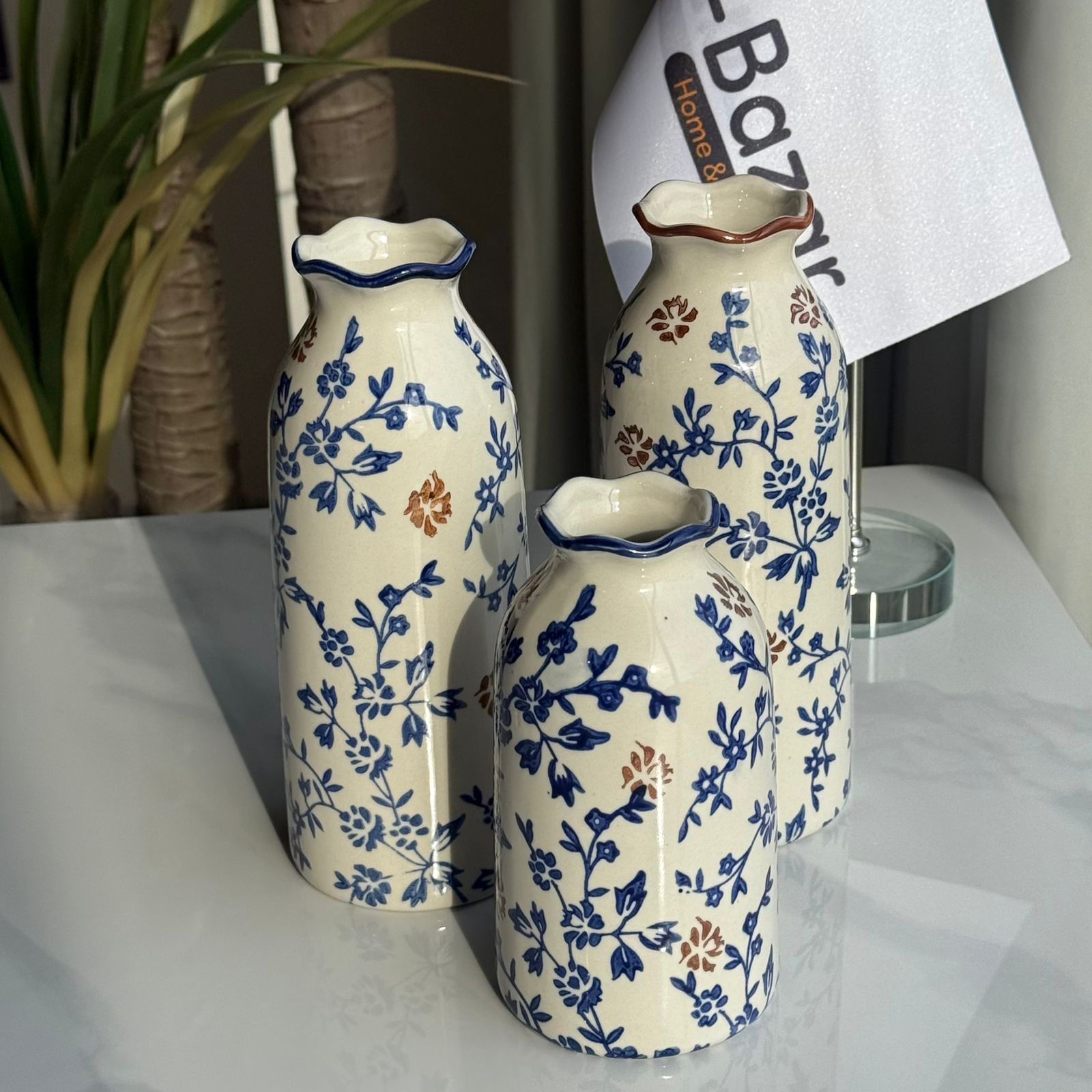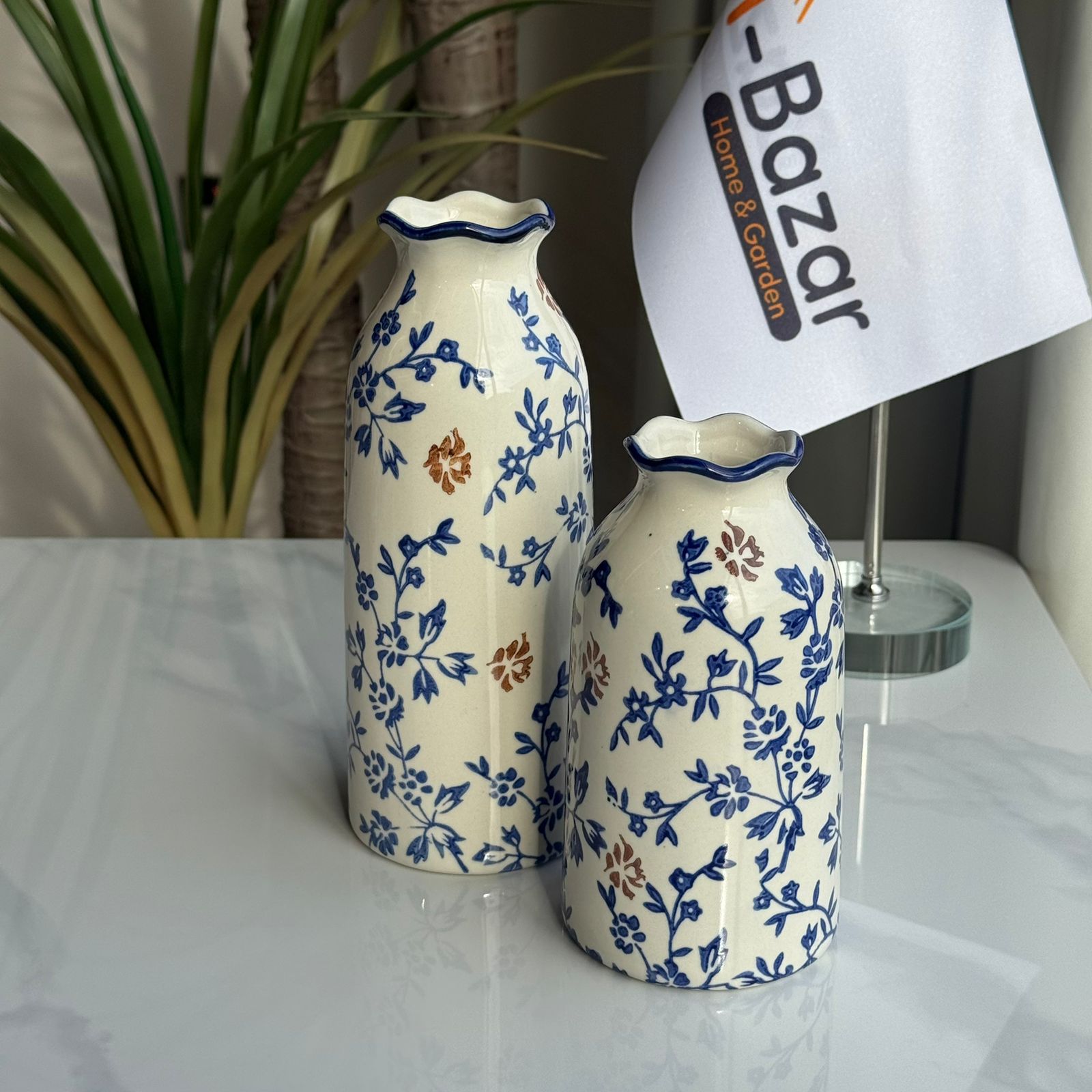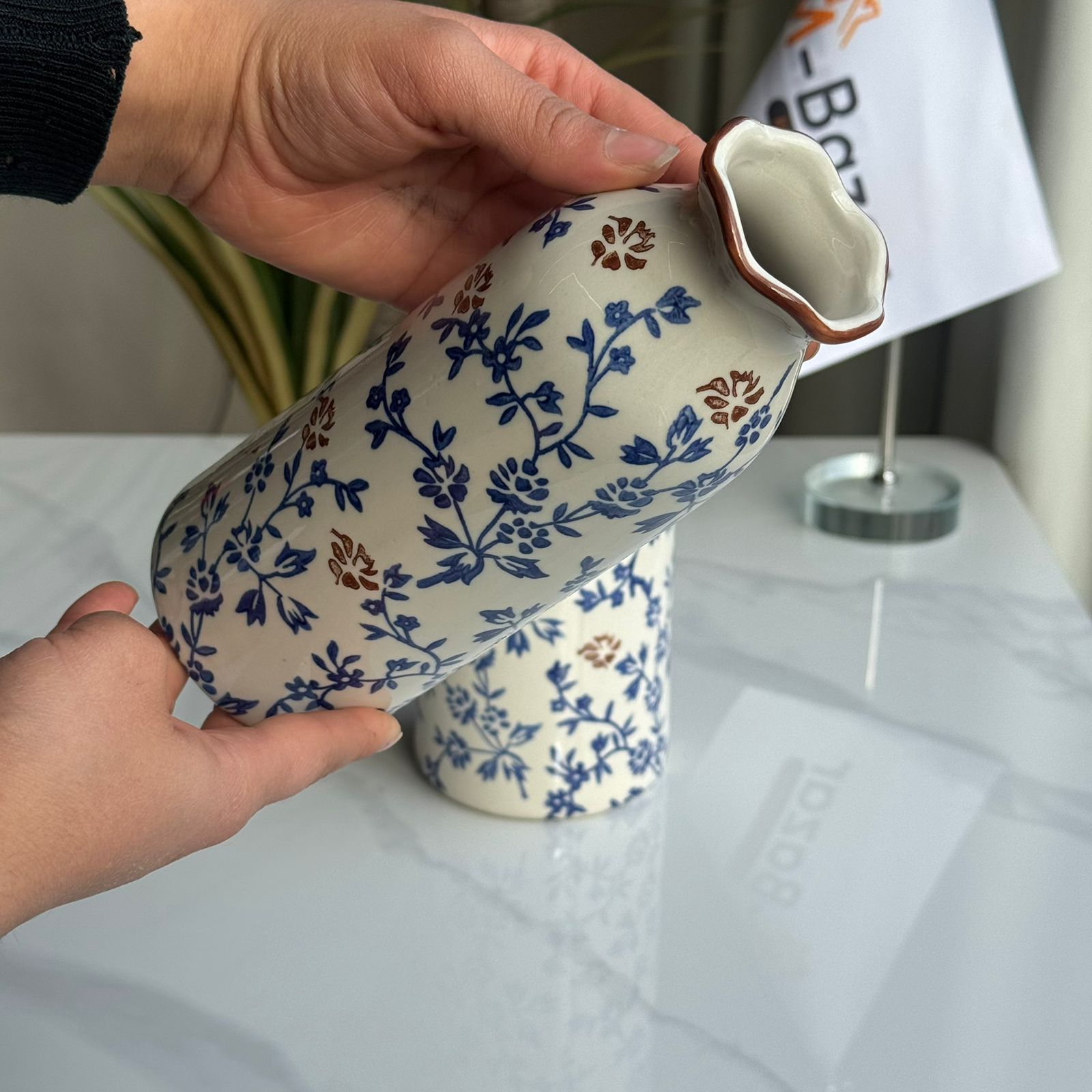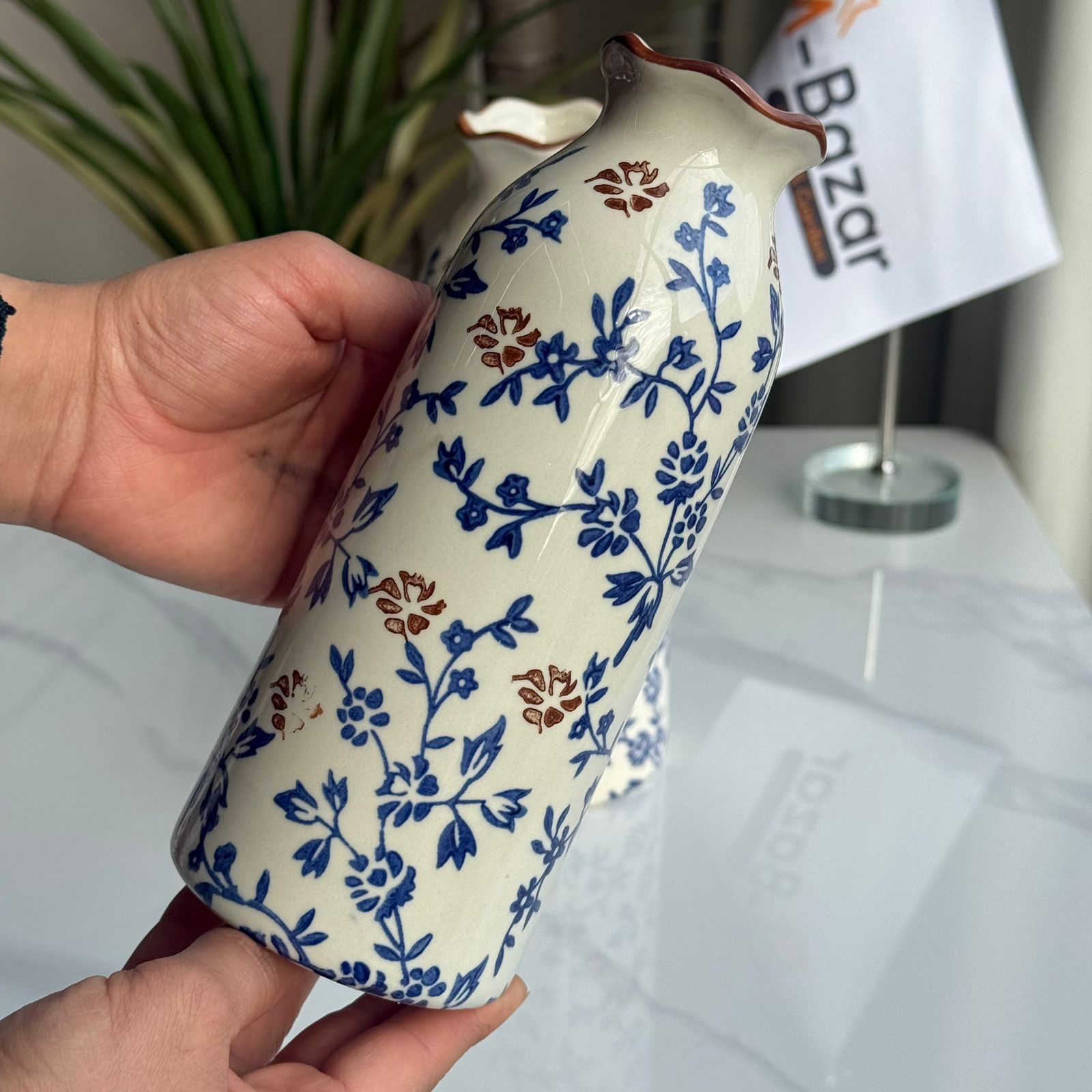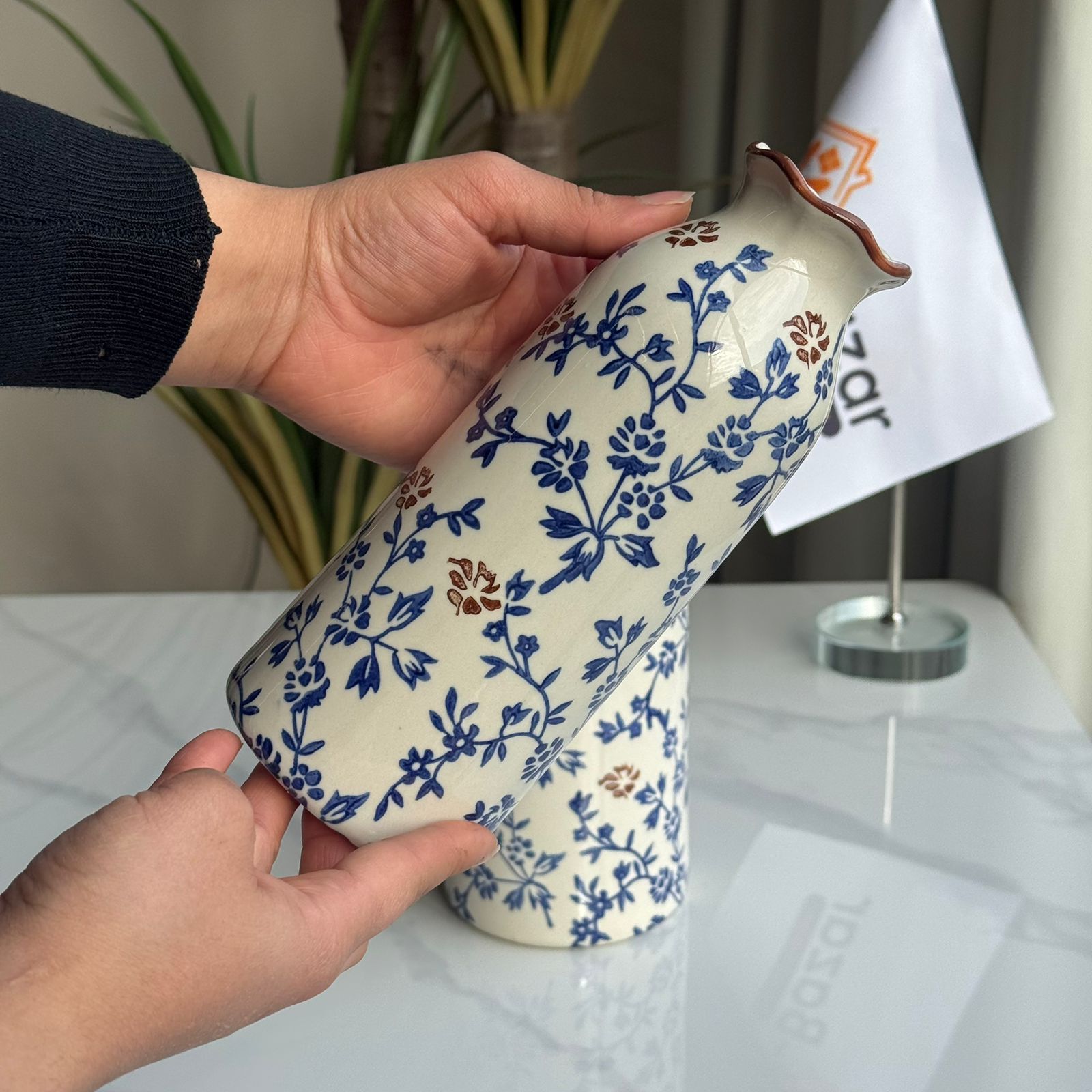 کۆلێکشنی گوڵدانی سیرامیکی گوڵی شین و قاوەیی