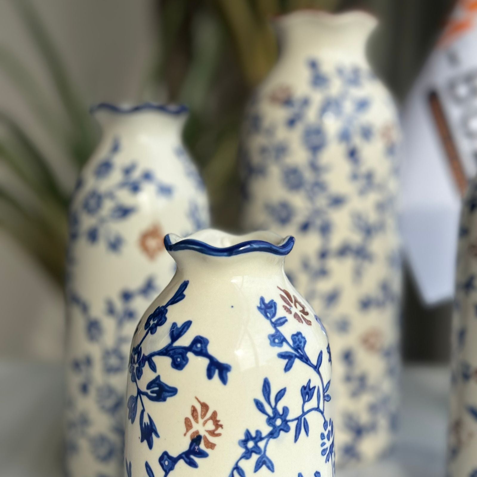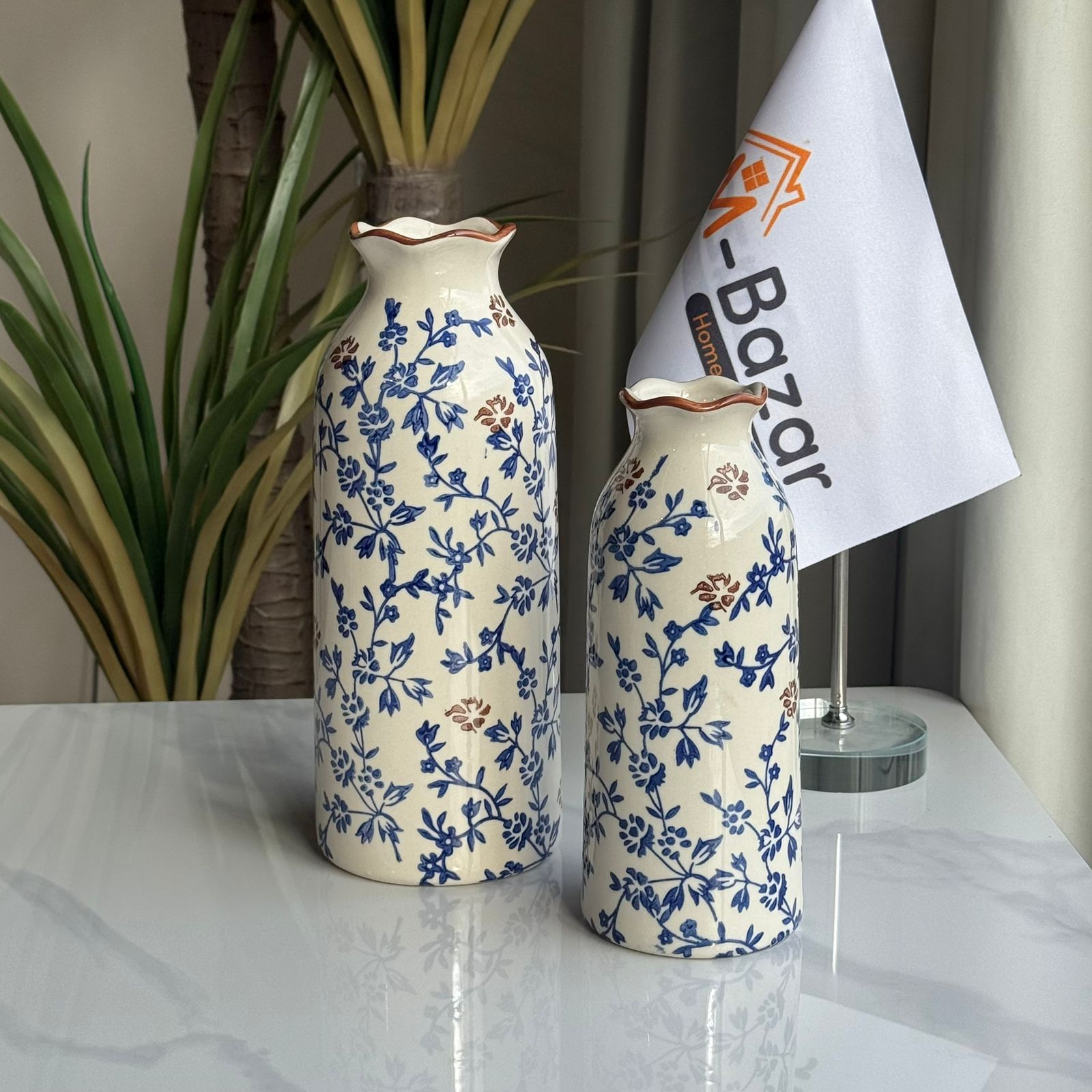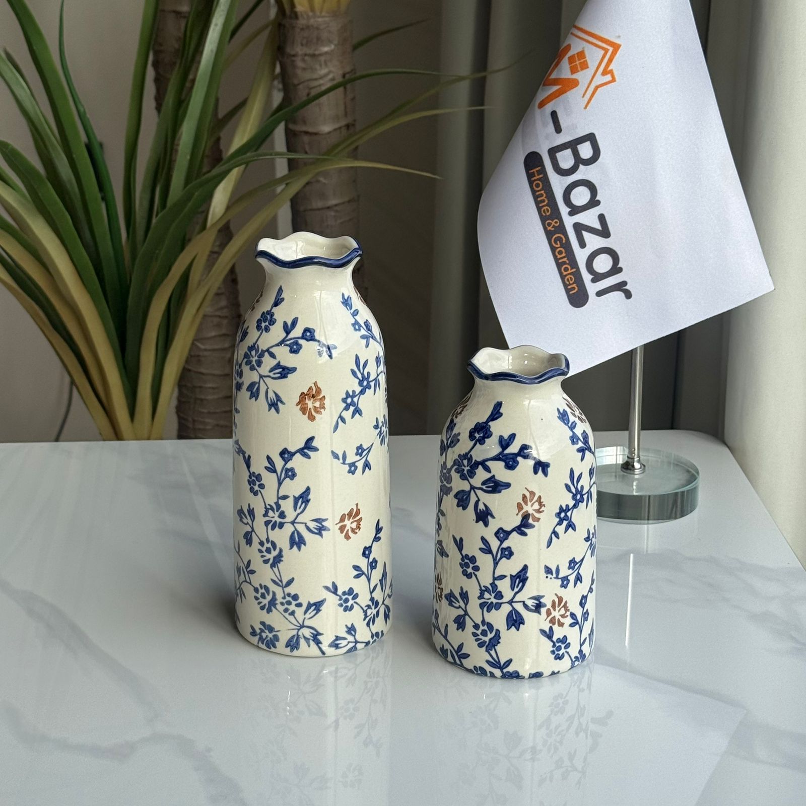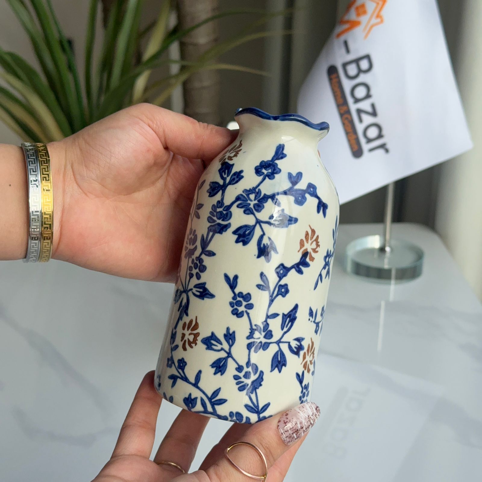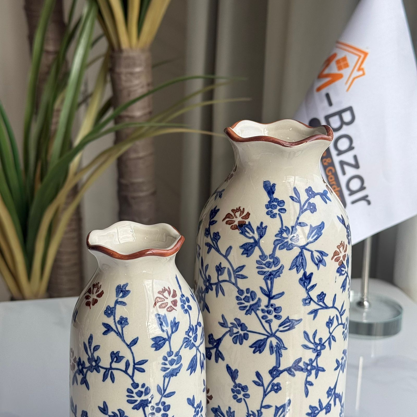 کۆلێکشنی گوڵدانی سیرامیکی گوڵی شین و قاوەیی