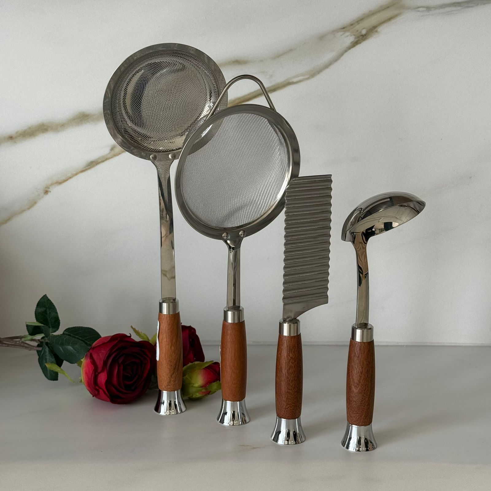 کۆکردنەوەی کەلوپەلی چێشتخانە لە پۆڵا ستانلێس بە دەستە دار
