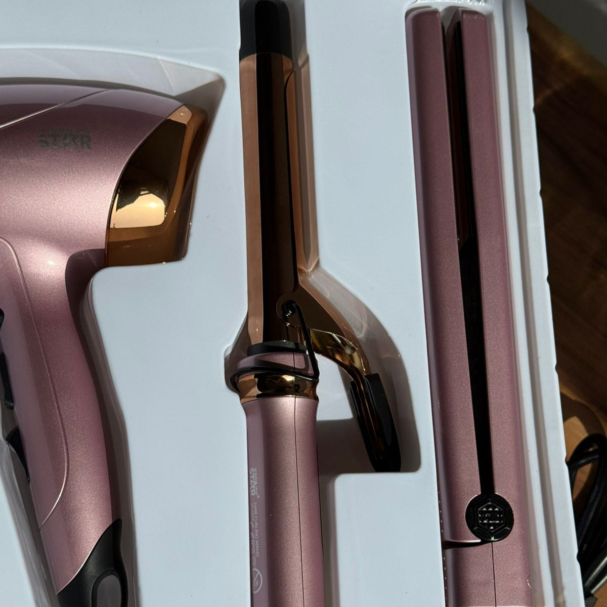 | Includes: | Hair Dryer, Curling Iron, Straightener |