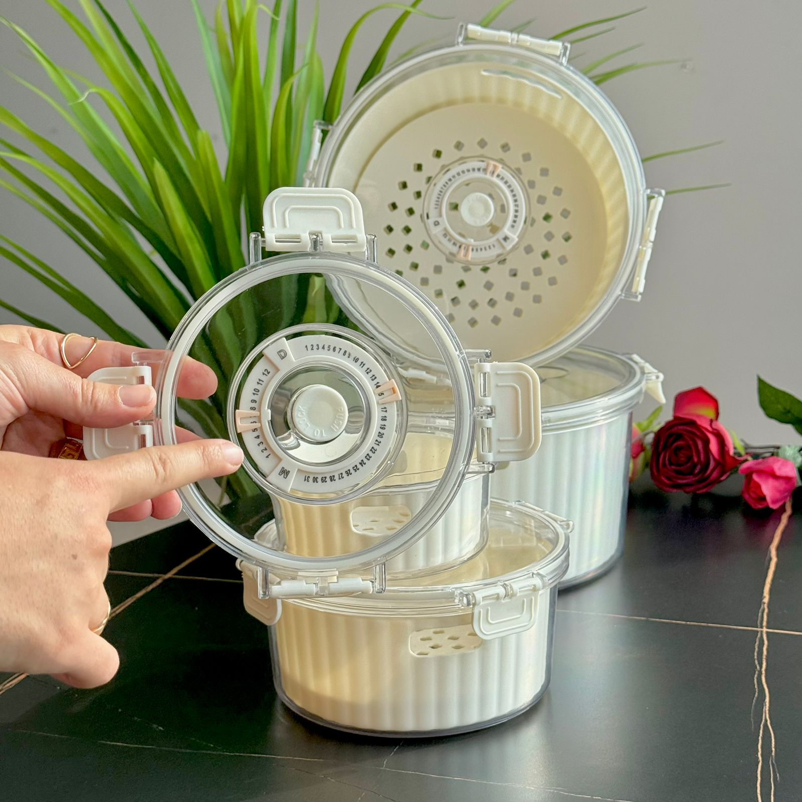Airtight Round Food Storage Container With Date Dial - Set Of 4