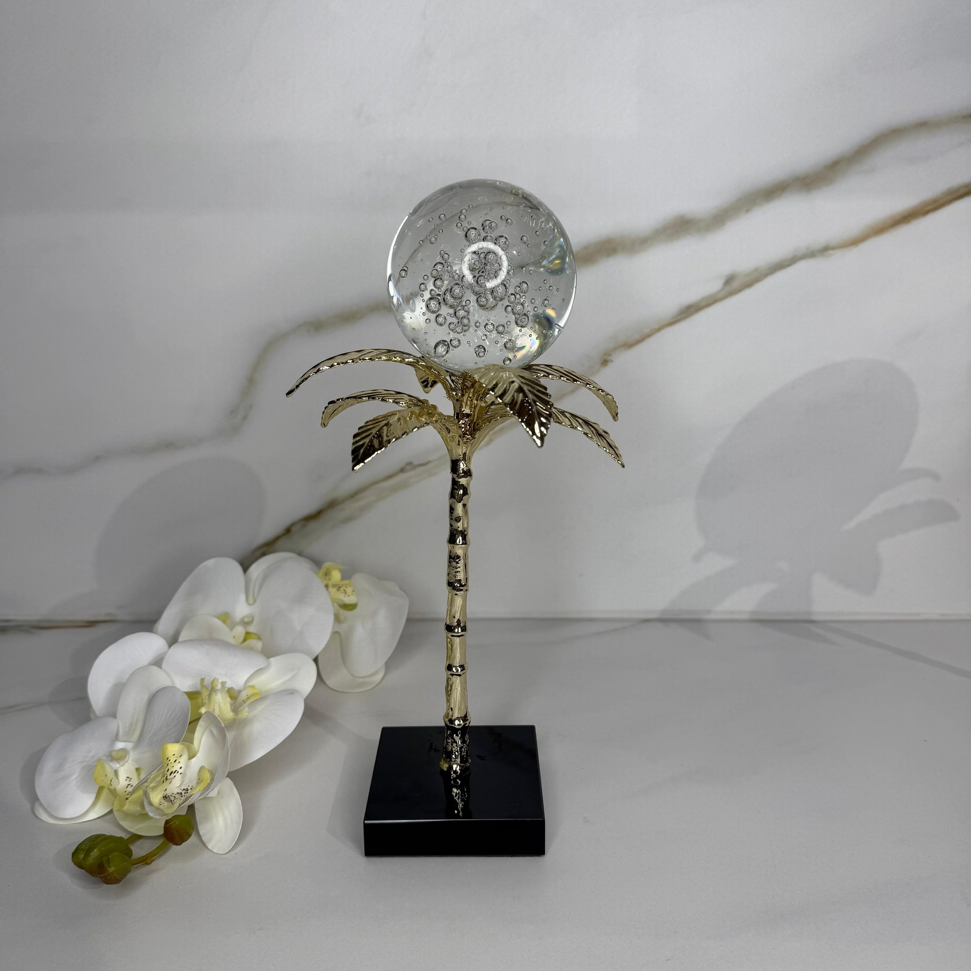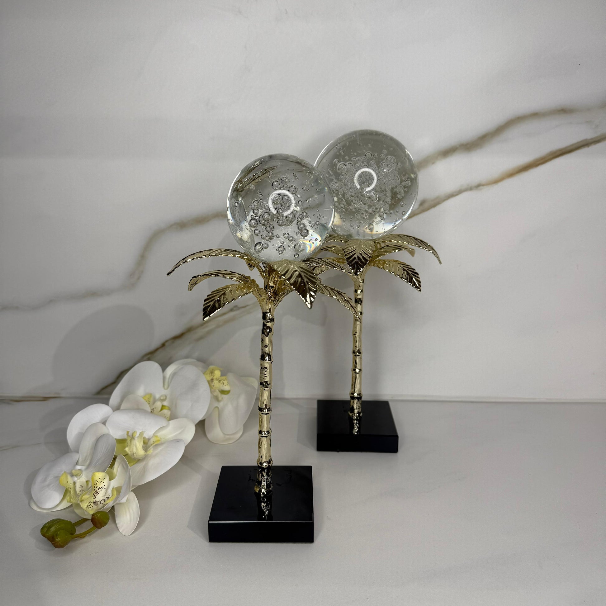 | Key Features: | - Elegant Palm Tree Design With Crystal-Clear Glass Globes - Gold Toned Textured Trunk And Leaves, Filled With Shimmering Bubbles Inside The Globe -Artistic Design, Eye-Catching, Suitable For Modern, Minimalist, Or Floral-Themed Interior - Ideal For Home Decor Or Gifting |