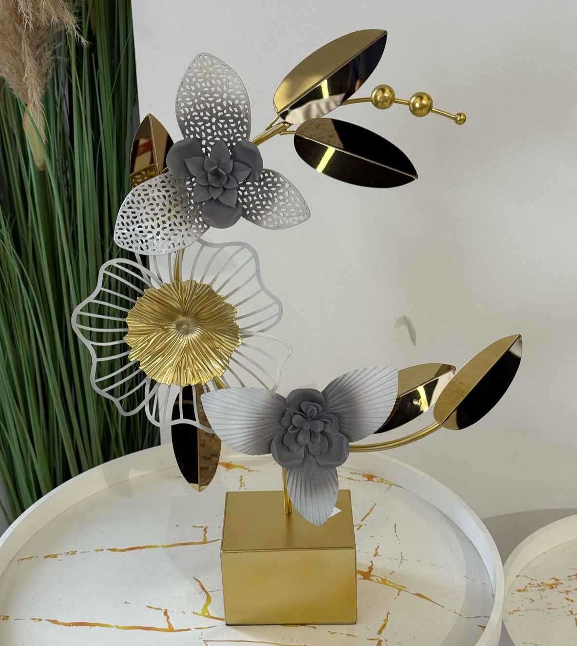 Metal Golden Floral Tabletop Decoration