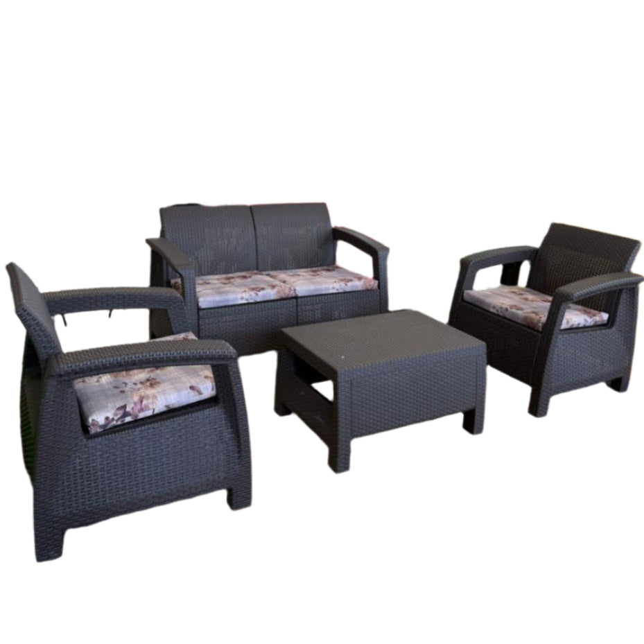 Modern Garden Seating Set - Brown & Decorative Cushion
