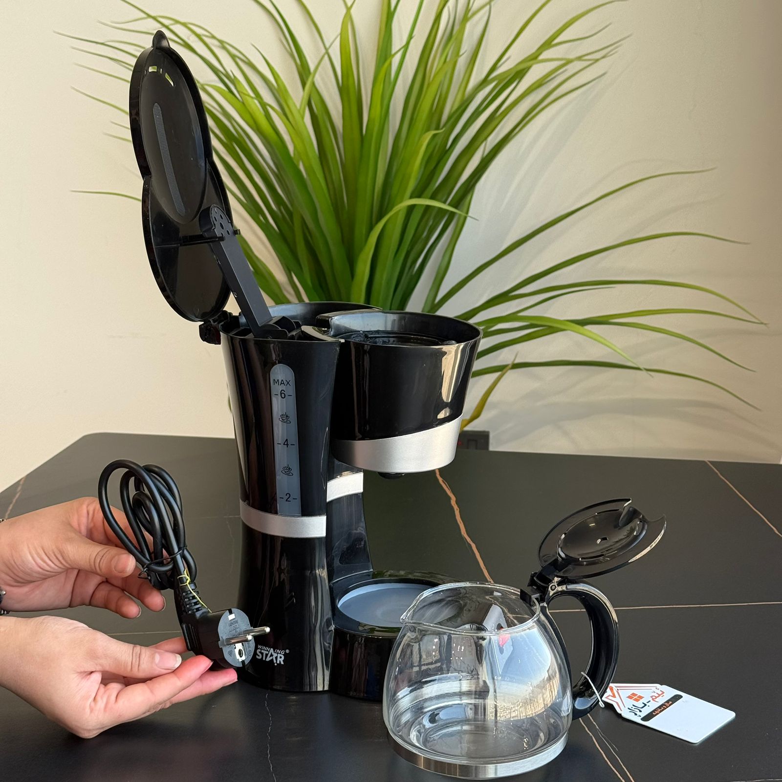 - مثالية لتحضير القهوة الطازجة المقطرة في المنزل أو المكتب أو في المقاهي الصغيرة. ما عليك سوى إضافة القهوة المطحونة والماء، والضغط على زر التشغيل، والاستمتاع بكوب غني وعطري في دقائق.