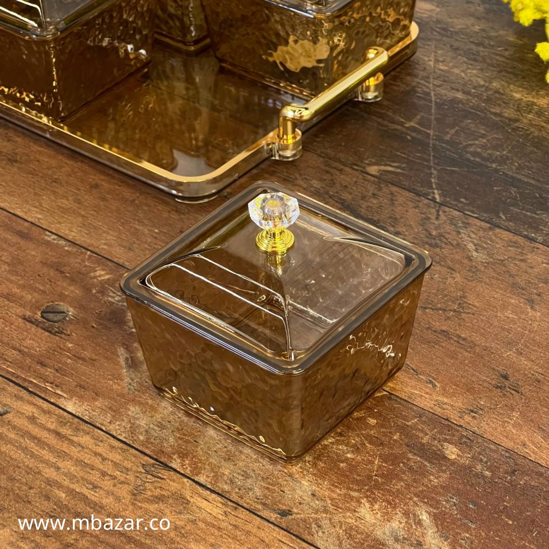 يتميز منظم تقديم الوجبات الخفيفة المقسم بمظهر فاخر وأنيق وسخي، وتخزين جميل وعرض للوجبات الخفيفة المختلفة.