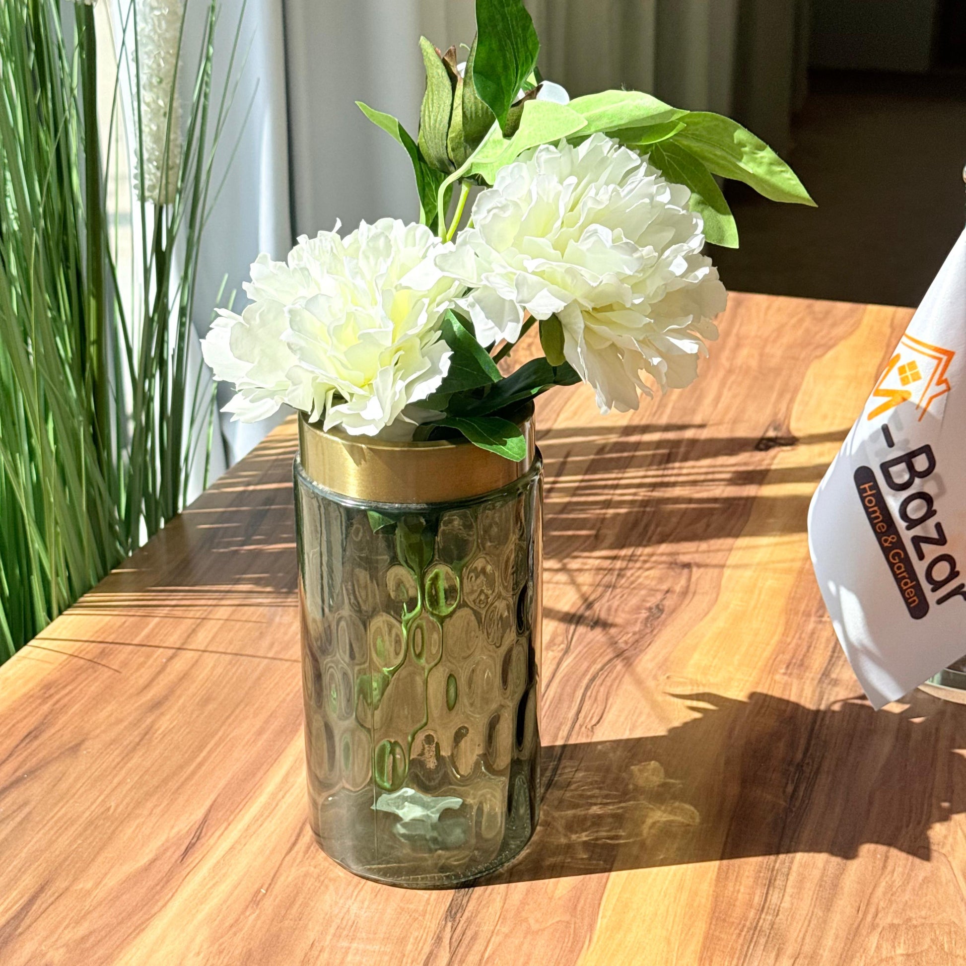 مزهرية زجاجية منقوشة أكوا مع أعلى المعدن |