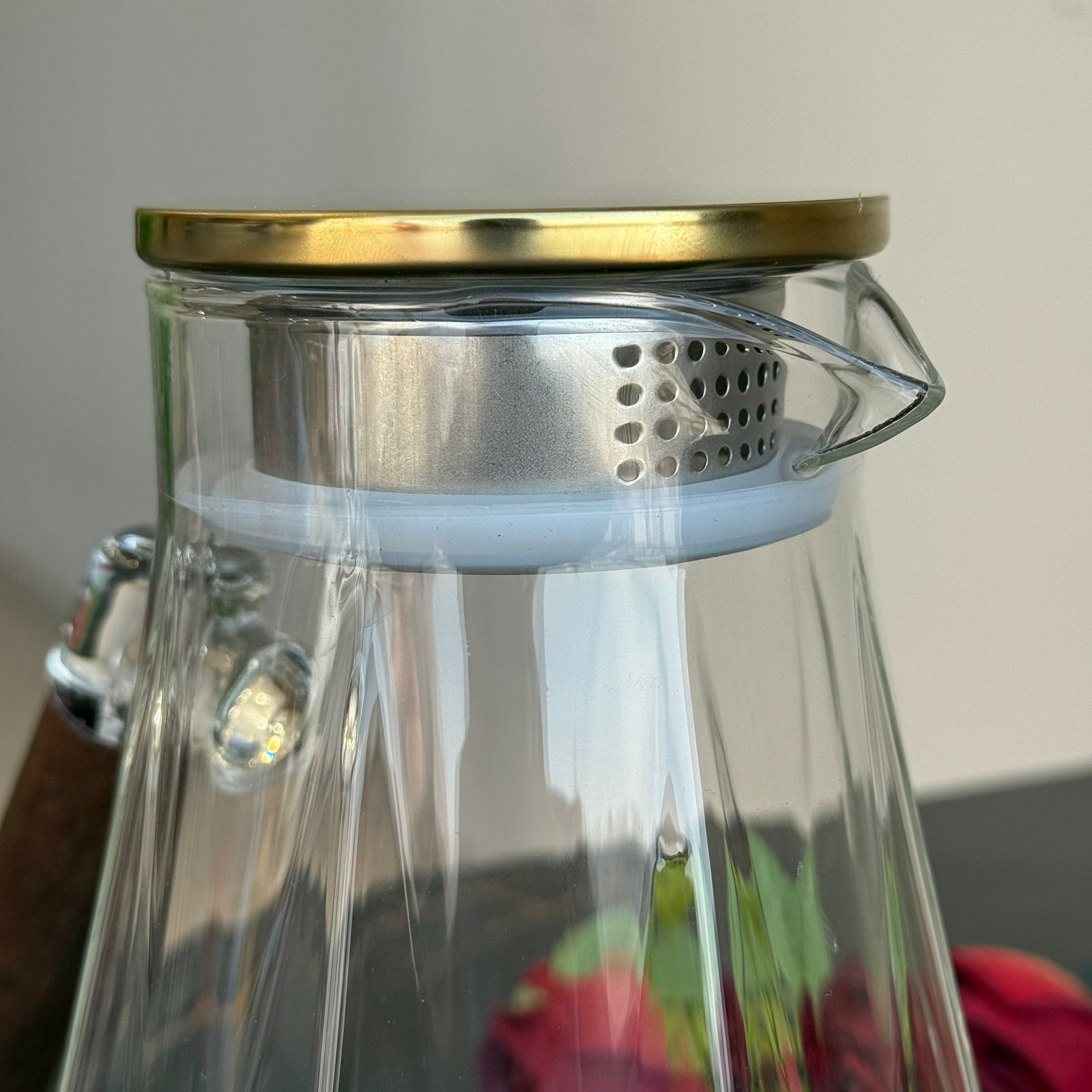Elegant Diamond-Pattern Glass Pitcher with Wooden Handle